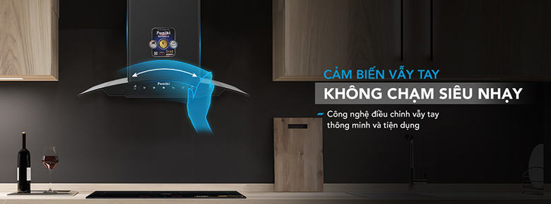 Tính năng điều khiển máy hút mùi bằng cử chỉ vẫy tay sẽ cực kỳ hữu dụng và là giải pháp cứu cánh khi tay bị bẩn hoặc ướt do tiếp xúc với thức ăn hoặc nước không tiện để điều chỉnh máy bằng cảm ứng. Ngoài ra, nếu máy hút mùi lắp đặt ở vị trí xa tầm với bạn vẫn có thể điều khiển nó bằng cảm biến cử chỉ.