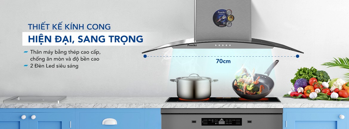 Ưu điểm nổi bật của máy hút mùi kính cong Funiki HKH9658