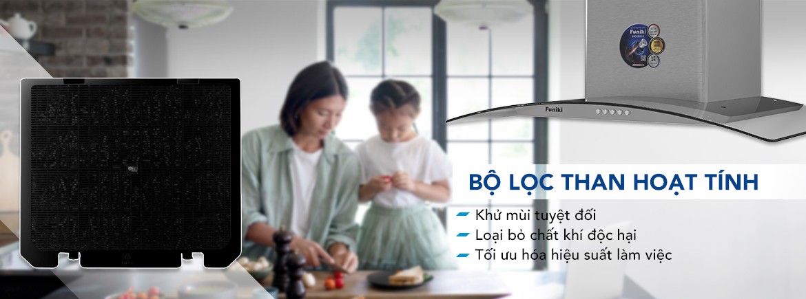 Máy hút mùi Funiki HKH9658 sử dụng bộ lọc carbon (than hoạt tính) có tác dụng loại bỏ các mùi thức ăn và chất khí độc hại sinh ra trong quá trình nấu nướng nhằm cải thiện chất lượng không khí trong không gian bếp và tối ưu hóa hiệu suất làm việc cho máy.