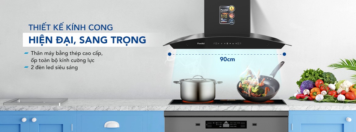 Ưu điểm nổi bật của máy hút mùi kính cong Funiki HKH9665