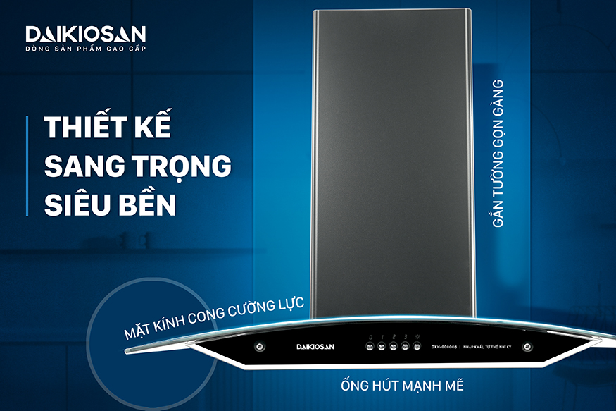 Sở hữu thiết kế cong khá độc đáo, máy hút mùi Daikiosan DKH-000008 giúp cho không gian bếp thêm nổi bật, tôn thêm vẻ thẩm mỹ và sang trọng theo đúng phong cách hiện đại.