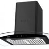 – Máy hút mùi áp tường dạng kính cong, tông màu đen sang trọng, mặt kính cường lực 6 mm, sáng bóng dễ dàng vệ sinh.
