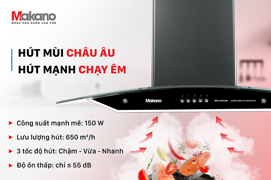 Ngoài ra, máy hút mùi Makano MKH-000008 là sản phẩm được trang bị động cơ siêu bền, lõi mô tơ bằng đồng siêu khỏe đạt công suất 150W, cho lưu lượng hút đạt 650m3/h, có 3 chế độ hút mùi từ mạnh đến nhẹ cho phép hút mùi phù hợp với từng món ăn. Chế độ hút này sẽ giúp người dùng tiết kiệm điện cũng như sử dụng hợp lý máy hút mùi cho từng loại nhu cầu khác nhau.