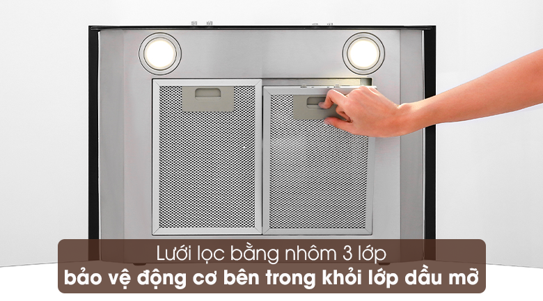 Lưới lọc máy hút mùi 3 lớp bằng nhôm giúp lọc sạch không khí, bảo vệ động cơ bên trong máy khỏi những lớp dầu mỡ, dễ dàng cho bạn tháo lắp và vệ sinh