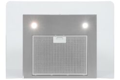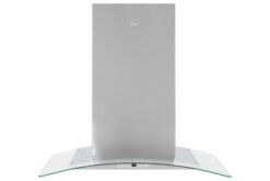 – Máy hút mùi áp tường dạng kính cong, tông màu bạc inox sáng, góp phần hài hòa thiết kế nội thất căn bếp gia đình.
