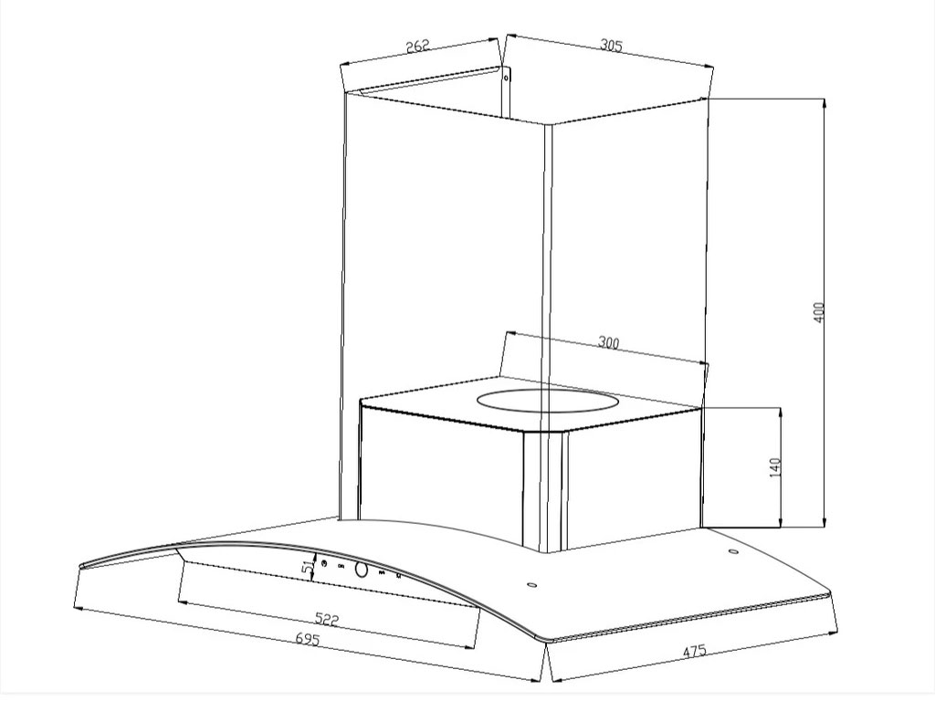 Máy hút mùi HZM 700SB thiết kế kính cong với công suất hút 790 m3/h, động cơ tuabin mạnh mẽ, lưới lọc nhôm và inox bền bỉ, bảng điều khiển cơ tối giản và đèn LED chiếu sáng tiện dụng, lý tưởng sử dụng cho mọi gia đình.
