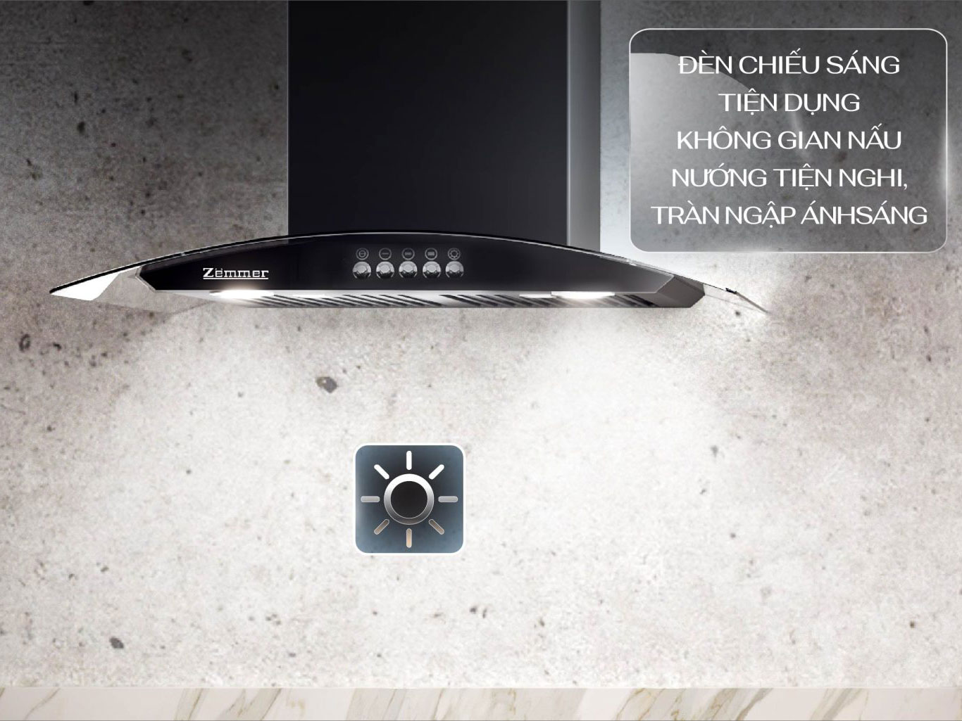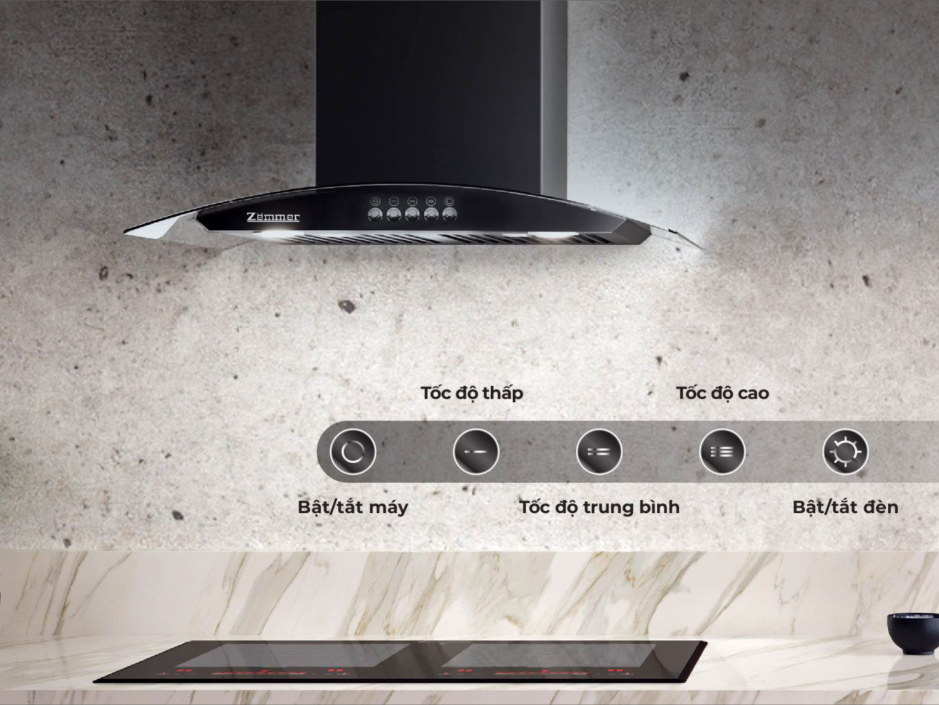 Máy hút mùi Zemmer được trang bị bảng điều khiển cơ học với 3 tốc độ hút giúp người dùng dễ dàng thao tác, điều chỉnh mức độ hút phù hợp với nhu cầu nấu nướng.
