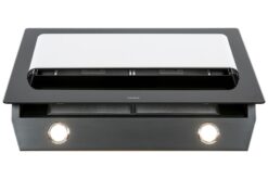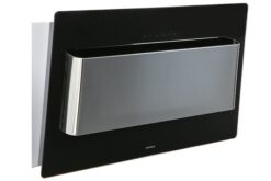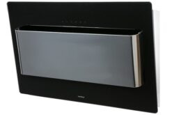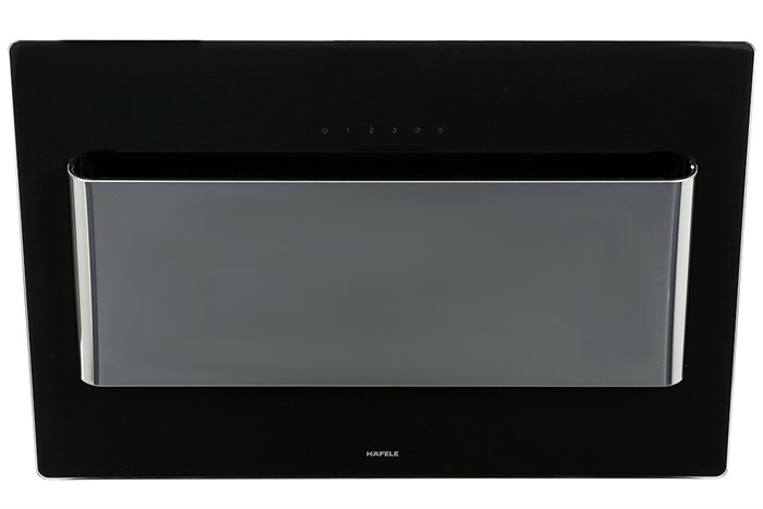 Máy hút mùi kính vát thiết kế áp tường, sang trọng với dạng gắn nghiêng tường, ngang 80 cm, bề mặt thép không gỉ kết hợp kính đen hiện đại