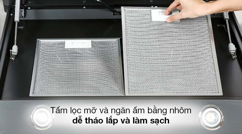 Tấm lọc mỡ và ngăn ẩm bằng nhôm bền tốt, thiết kế dễ tháo rời để vệ sinh hiệu quả nhất, tăng hiệu suất làm việc