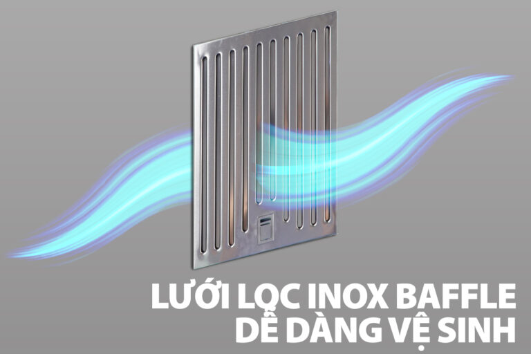 – Bộ lọc than hoạt tính và lưới Inox Baffle có tác dụng khử mùi, thanh lọc không khí, dầu mỡ hiệu quả. Tạo ra không khí trong lành và sạch sẽ cho không gian bếp.