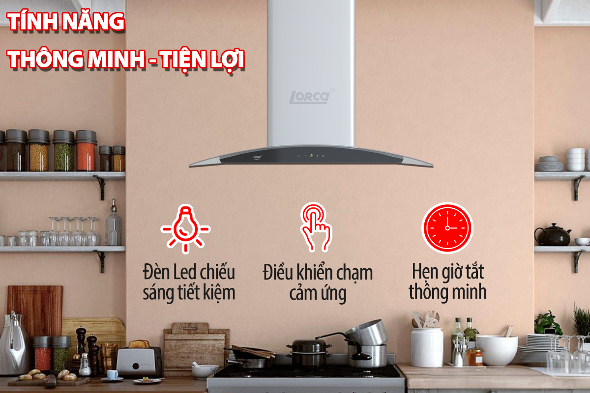 Máy hút mùi áp tường | Lorca TA-2001C | 90cm | thiết kế sang trọng | hệ điều khiển cảm ứng siêu nhạy | an toàn, bền bỉ và tiết kiệm điện năng |