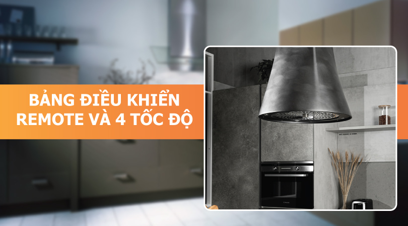 Máy hút mùi đảo đi kèm với điều khiển từ xa giúp người sử dụng dễ dàng điều chỉnh 4 tốc độ hút khác nhau chỉ với một thao tác đơn giản. Điều này giúp bạn linh hoạt thay đổi công suất hút phù hợp với từng nhu cầu sử dụng, từ việc chiên xào đến nấu nướng.