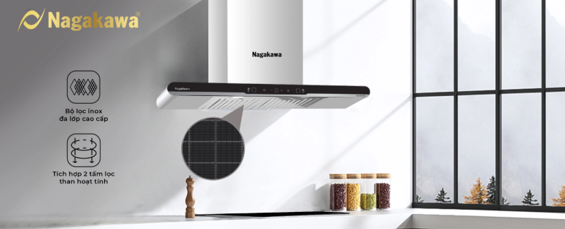 Tích hợp công nghệ NaSYNC – Công nghệ kết nối đồng bộ máy hút mùi và bếp từ độc quyền của Nagakawa, giúp tự động cảm biến bật tắt máy hút mùi rất tiện dụng, tối giản thao tác, tiết kiệm thời gian.