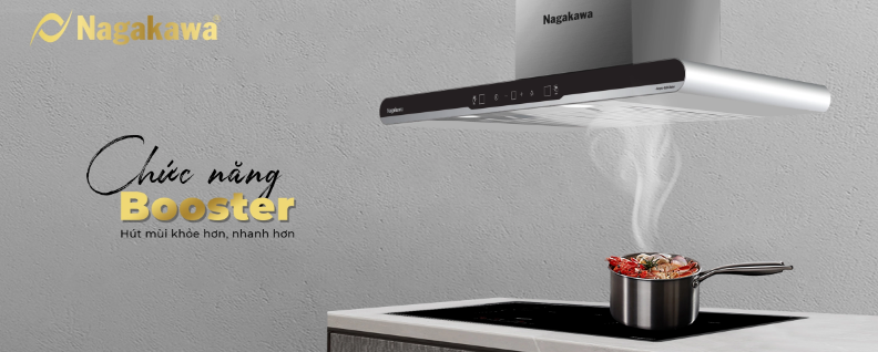 Máy hút mùi Nagakawa NKTH01M70 trang bị chức năng Booster hoạt động với công suất cực đại giúp hút mùi khỏe hơn, nhanh hơn, đảm bảo giữ cho bầu không khí khu bếp luôn thoáng mát, trong lành.