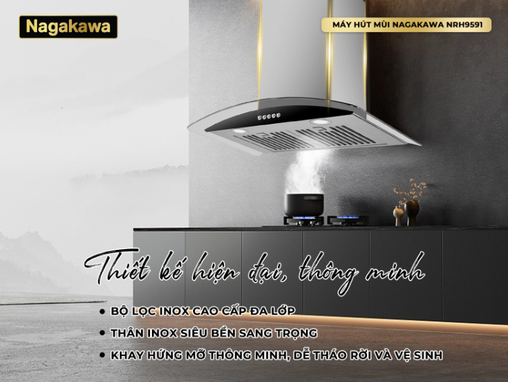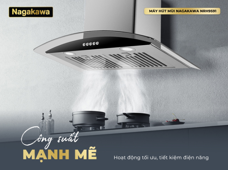 Máy hút mùi Nagakawa NRH9591 mang đến không gian bếp thông thoáng, giúp loại bỏ mùi thức ăn dầu mỡ nhanh chóng giữ cho không khí trong bếp luôn trong lành, sạch sẽ. Với công suất hiệu quả 170W, đảm bảo khả năng hoạt động mạnh mẽ đồng thời vẫn giảm chi phí năng lượng, tiết kiệm điện so với nhiều thiết bị khác. Sở hữu máy hút mùi NRH959, bạn sẽ chẳng còn lo nấu nướng ám mùi thức ăn lên quần áo, đầu tóc đảm bảo căn bếp luôn sạch đẹp, hiện đại và bảo vệ sức khỏe cho cả gia đình.