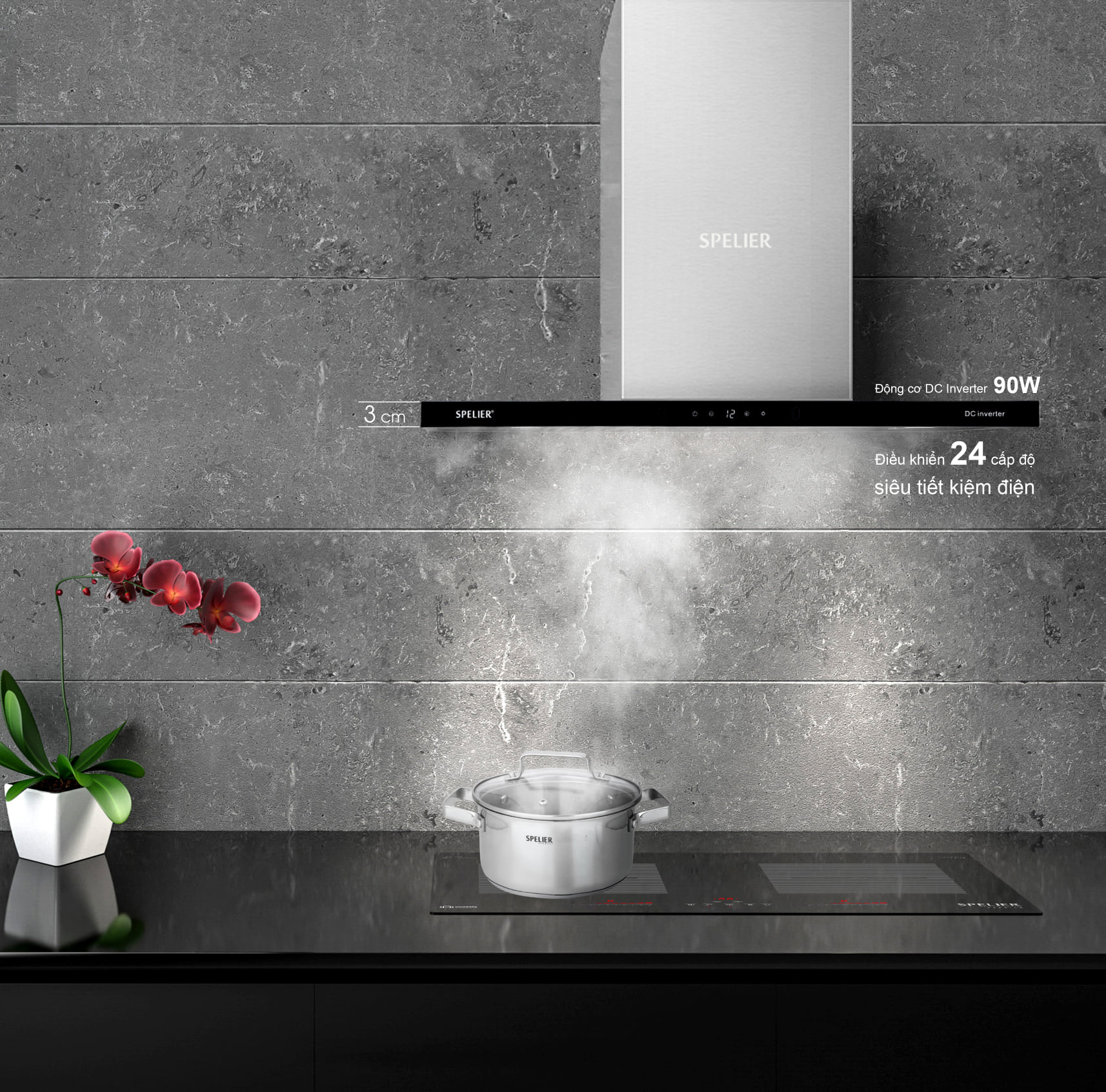 Đây là dòng sản phẩm gắn tường của Spelier, với các chức năng đặc biệt, được lắp ráp bởi vật liệu hạng nhất giúp làm sạch không khí, giữ căn bếp trở lên thoáng mát và đảm bảo yếu tố thẩm mỹ cũng như tính bền bỉ theo thời gian.