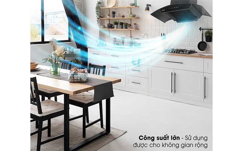Máy hút mùi nhà bếp Kieler KL-T901 được trang bị động cơ Turbin đôi cho khả năng hoạt động êm ái, với độ ồn chỉ 72dB không gây tiếng ồn lớn ảnh hưởng sinh hoạt, công suất hút lớn lên đến 13m3/phút giúp loại bỏ mùi thức ăn trong gian bếp nhanh chóng, tiết kiệm điện năng hiệu quả, thích hợp sử dụng cho những gian bếp không gian lớn có thể lên đến 50m2.