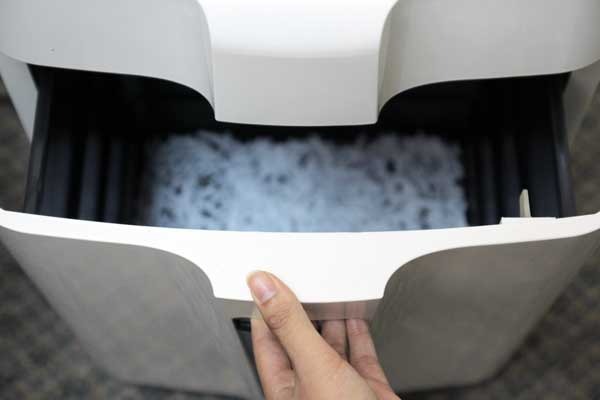 Thùng chứa giấy vụn của PS-1200C có dung tích lên đến 20 lít, cho phép sử dụng liên tục trong nhiều lần mà không cần phải thường xuyên đổ bỏ. Thiết kế dạng kéo ra thông minh giúp người dùng dễ dàng tháo lắp, vệ sinh, hoặc kiểm tra mà không cần gỡ rối phức tạp. Đặc biệt, máy còn có chức năng báo thùng rác đầy, đảm bảo quá trình vận hành luôn được giám sát hiệu quả.