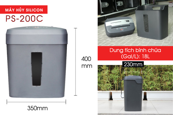 Máy hủy tài liệu Silicon PS-200C, công suất hủy 10 tờ/lần, thích hợp dùng cho văn phòng.