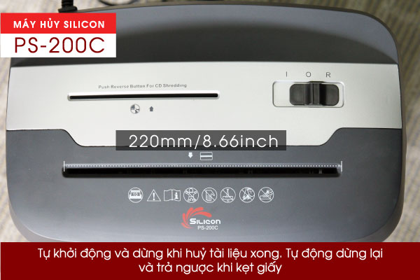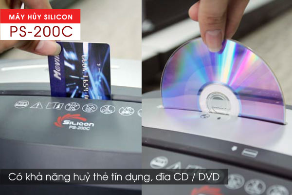 – Máy hủy tài liệu Silicon PS-200C được thiết kế đa năng, với nhiều chức năng. Ngoài công dụng chính dùng để hủy tài liệu hủy giấy thì máy có thêm chức năng hủy đĩa CD / DVD… rất tiện dụng.