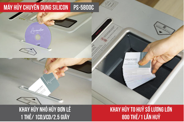 – Máy hủy tài liệu Silicon PS-5800C dành cho khách hàng là ngân hàng, tài chính, y tế, bảo hiểm, hàng không…