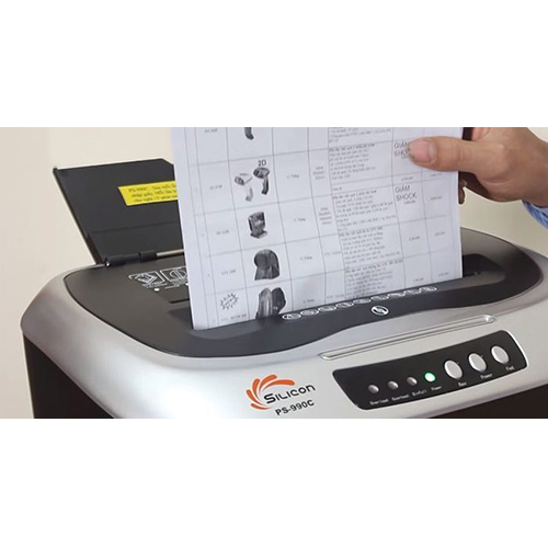 Máy hủy tài liệu Silicon PS-990C có thể hoạt động liên tục 8 phút với công suất hủy 6 tờ A4/lần, tốc độ hủy 2m/phút. Máy hủy tài liệu Silicon PS-990C chuyên dùng để hủy giấy, đĩa CD, card, kim bấm.