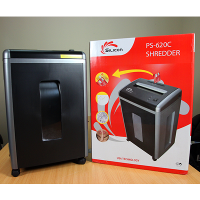 – Máy hủy tài liệu Silicon PS-620C có công suất Hủy 1 lần 12 tờ A4/70g.