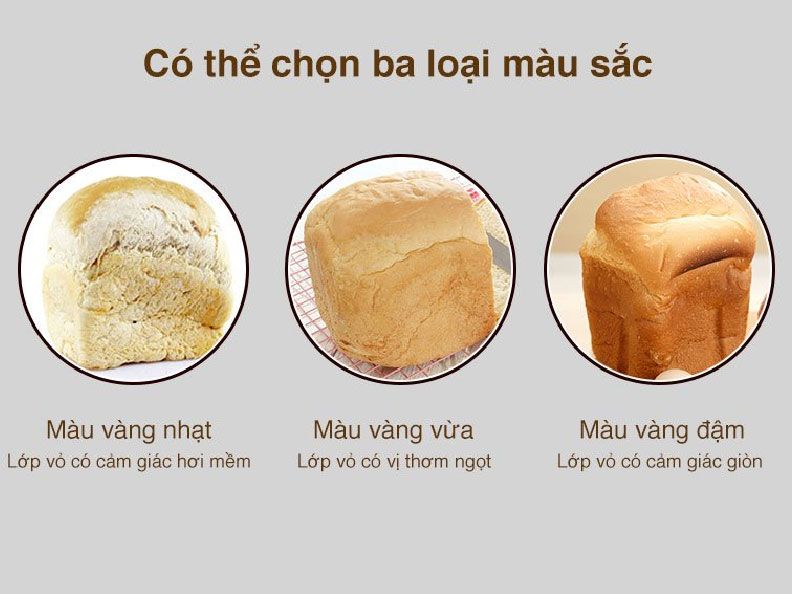 Bạn còn có thể chọn 3 mức độ màu vỏ bánh: vàng nhạt, vàng vừa và vàng đậm – tùy theo sở thích về độ giòn và hương vị.