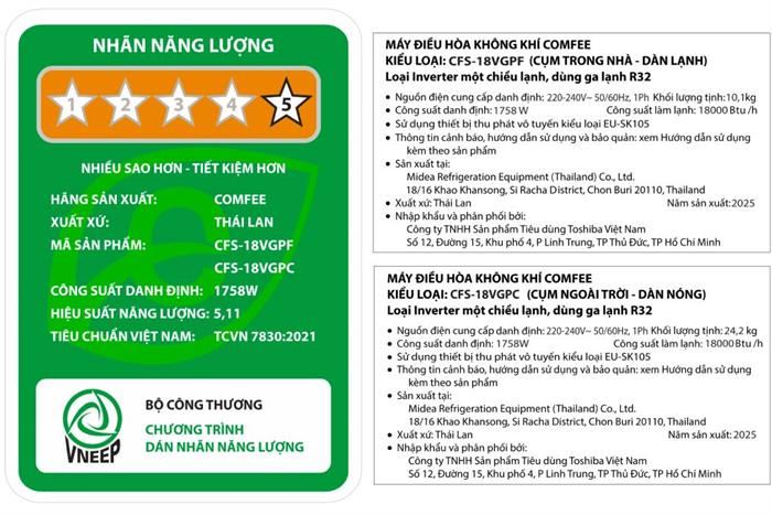 Máy lạnh Comfee Inverter 2 HP CFS-18VGPF đáp ứng trọn vẹn nhu cầu làm mát cho không gian lớn với khả năng vận hành mạnh mẽ, tiết kiệm điện và kết nối thông minh. Sự kết hợp giữa công nghệ Inverter, hệ thống lọc kép, điều khiển bằng giọng nói và các tính năng chăm sóc sức khỏe như Sleep Curve hay Follow Me giúp thiết bị trở thành người bạn đồng hành đáng tin cậy trong cuộc sống hiện đại.