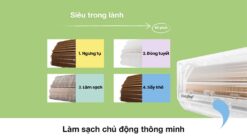 – Công nghệ Active Clean: tự động làm sạch dàn lạnh bằng cách ngưng tụ – đóng tuyết – làm sạch – sấy khô, ngăn ngừa nấm mốc và giữ luồng khí đầu ra luôn sạch sẽ.