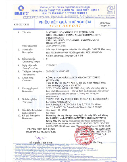 Theo thực nghiệm của Quatest 3** – Trung tâm kỹ thuật tiêu chuẩn đo lường chất lượng 3, điện năng tiêu thụ của máy lạnh máy điều hòa không khí Daikin – FTKB25WAVMV là 0,82kWh. Tức chỉ tương đương 2.000đ/đêm nếu giá điện trung bình là 2.500đ/kWh.