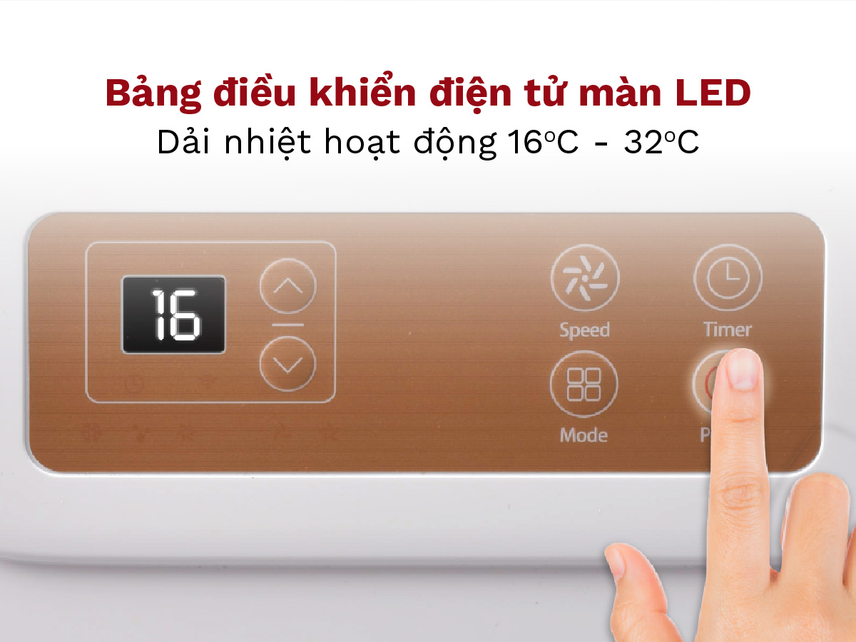 Những thao tác như bật/tắt thiết bị, chuyển đổi chức năng, hẹn giờ mở máy…trở nên hết sức đơn giản khi bạn sử dụng App để điều khiển máy, Đồng thời máy cũng được trang bị điều khiển từ xa tiện lợi, thông minh.