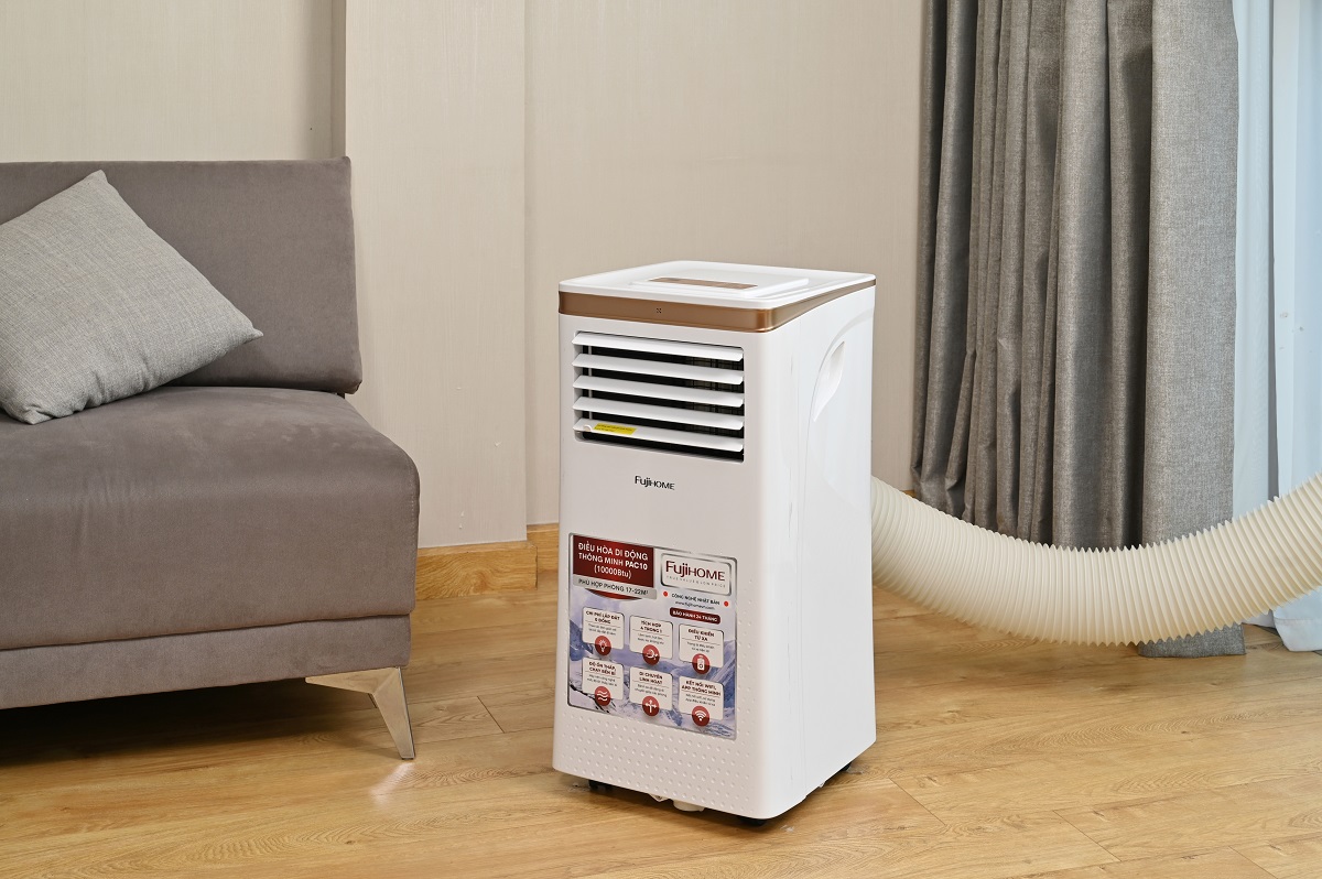 Máy điều hòa di động thông minh Fujihome PAC10, Khả năng làm lạnh công suất 10000BTU, phù hợp sử dụng cho không gian kín diện tích 17-22m2.
