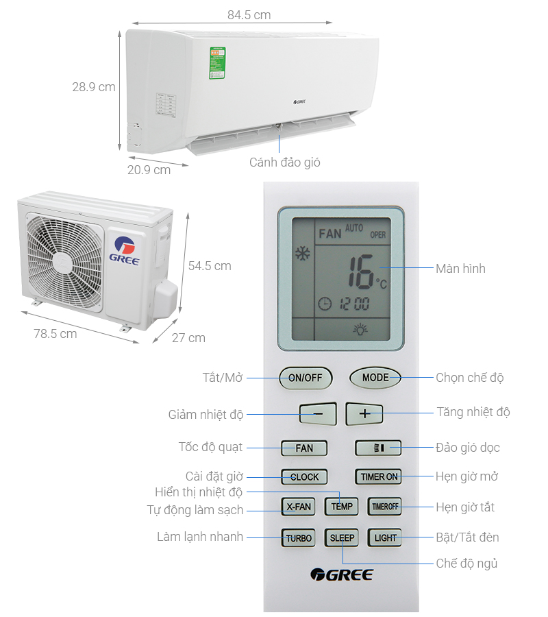 Chiếc máy lạnh Gree này được trang bị chế độ Turbo có khả năng làm lạnh nhanh chóng vô cùng hiện đại. Chỉ với một nút nhấn chọn chế độ Turbo đơn giản, bạn sẽ gần như ngay lập tức được đắm mình trong bầu không khí thư giãn mát lạnh chỉ trong tích tắc.