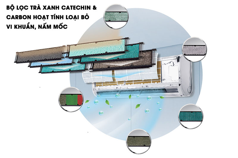 Không khí trong lành, sạch khuẩn với bộ lọc trà xanh Catechin & Carbon hoạt tính
