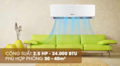 Máy lạnh Gree 2.5 HP GWC24KE-K6N0C4 mang tông màu trắng cổ điển tạo nên vẻ sang trọng, dễ dàng phối hợp với không gian nội thất nhà bạn. Máy lạnh Gree có công suất 2.5 HP, phù hợp với phòng có diện tích từ 30 – 40 mét vuông như phòng họp, phòng ăn, phòng tập,…