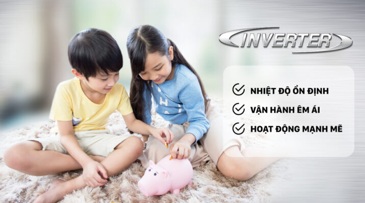 Công nghệ Inverter sẽ điều chỉnh tốc độ quay động cơ máy nén phù hợp với công suất làm lạnh mà không phải liên tục bật tắt máy nén. Khi nhiệt độ phòng gần đạt đến nhiệt độ cài đặt, máy sẽ duy trì ở nhiệt độ ổn định. Công nghệ INVERTER giúp tiết kiệm hóa đơn tiền điện đáng kể so với các dòng không INVERTER. Đồng thời, cải tiến độ ồn dàn nóng và dàn lạnh giúp máy hoạt động êm ái, duy trì nhiệt độ ổn định và đạt công suất tối ưu.