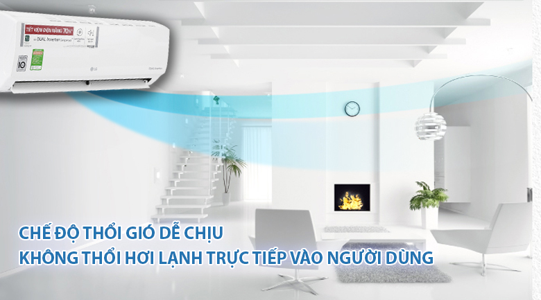 Với chế độ gió thổi dễ chịu, cánh quạt đảo gió được thiết kế hướng lên trên, không để hơi lạnh thổi trực tiếp vào người dùng. Nhờ đó, đem lại cảm giác thoải mái, dễ chịu, tránh mắc các chứng bệnh về hô hấp, đặc biệt thích hợp với những gia đình có người già và trẻ nhỏ.