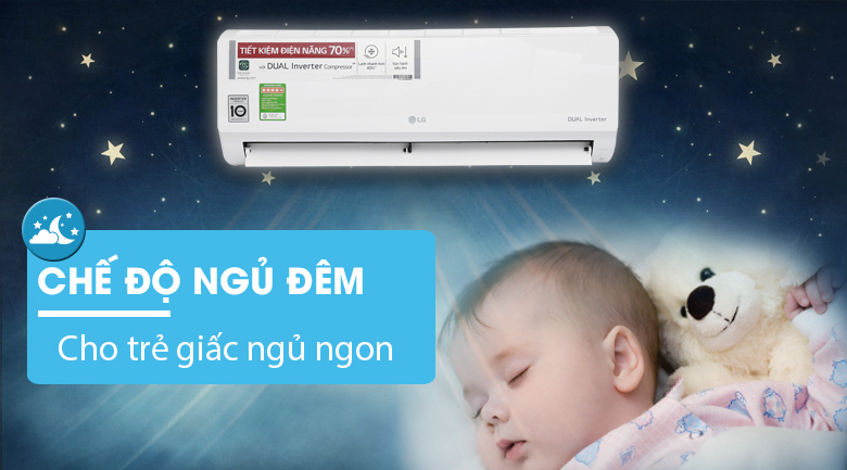 Được trang bị công nghệ Dual Inverter tiên tiến nên máy lạnh LG giúp tiết kiệm điện tối ưu cho người dùng. Đồng thời, công nghệ này cho phép máy vận hành bền bỉ và êm ái hơn, tạo cảm giác dễ chịu, chống ồn, mang lại giấc ngủ ngon cho cả gia đình.