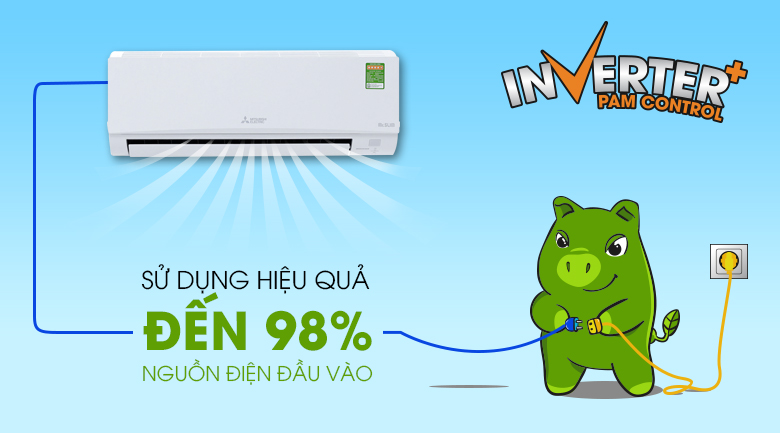 Máy lạnh được trang bị công nghệ Inverter PAM Control không chỉ giúp vận hành ổn định, bền bỉ mà nó còn giúp nâng cao hiệu quả sử dụng điện (tận dụng đến 98% nguồn điện đầu vào) giúp tiết kiệm hiệu quả điện năng tiêu thụ hàng tháng.