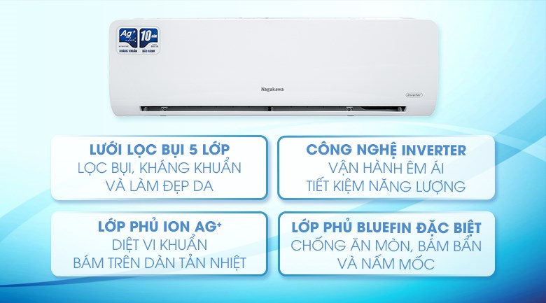 hìn chung, máy lạnh Nagakawa Inverter 2 HP NIS-C18R2H10 sẽ là một sự lựa chọn lý tưởng khi bạn cần một chiếc máy lạnh có thiết kế đẹp mắt, dành cho phòng có diện tích 20 – 30 m2 và muốn sử dụng các công nghệ tiện ích như diệt khuẩn, lọc bụi, khử mùi, tiết kiệm điện,….