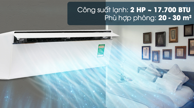 Máy có công suất 2 HP thích hợp cho nhiều loại phòng ốc có diện tích khoảng từ 20 – 30 m2, chiều cao từ sàn đến trần nhà khoảng 3m.
