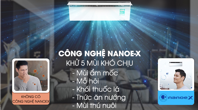Đây là công nghệ rất độc đáo và gần như là công nghệ khử mùi mạnh nhất trên máy lạnh hiện nay. Nhờ NanoeX mà mùi thuốc lá, mùi ẩm mốc,… được thanh lọc một cách dễ dàng. Ngoài ra, với công nghệ này còn sản sinh ra rất nhiều gốc OH, tạo độ ẩm tốt cho da.