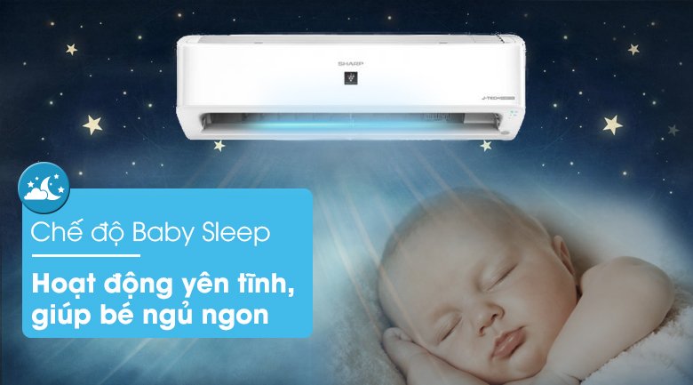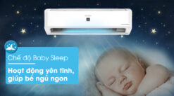 Với chế độ Baby Sleep, hơi lạnh sẽ được thổi ra một cách nhẹ nhàng và giảm thiểu tối đa tiếng ồn khi máy hoạt động, mang lại giấc ngủ ngon cho gia đình bạn, phù hợp cho gia đình có trẻ nhỏ.