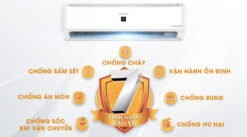 Mẫu máy lạnh Sharp Inverter còn được trang bị 7 tính năng bảo vệ mà hãng muốn cho khách hàng sử dụng yên tâm hơn, vì có thể chống cháy, chống sốc, chống sấm sét, chống rung, chống ăn mòn, hư hỏng do mưa gió và duy trì máy hoạt động ổn định với điện áp rộng.