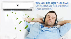 Khi kích hoạt tính năng tự khởi động lại khi có điện, bạn sẽ không cần cài đặt lại chế độ máy lạnh sau khi bị mất điện đột ngột, vô cùng tiện lợi cho việc sử dụng vào ban đêm cũng như không làm ảnh hưởng đến giấc ngủ ngon của bạn và gia đình.