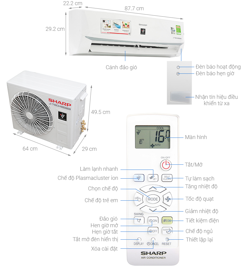 Với công nghệ Inverter hiện đại này, máy lạnh Sharp có thể kiểm soát chính xác điện năng tiêu thụ, giảm công suất, hoạt động tiết kiệm điện năng khi phòng đã đạt nhiệt độ cài đặt.