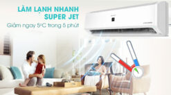 Chế độ làm lạnh nhanh Super Jet cho phép người dùng tận hưởng ngay luồng không khí mát lạnh tức thì, xua tan cái nóng bức của thời tiết bên ngoài.
