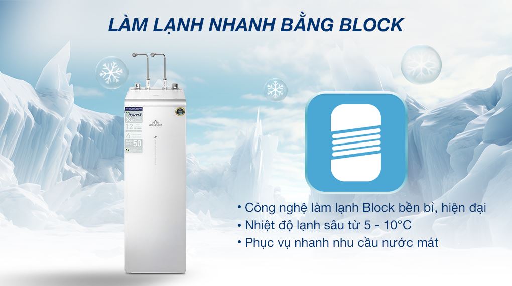 – Công nghệ làm lạnh bằng Block: làm lạnh nhanh, nước lạnh sâu (5 – 10°C), tiết kiệm điện.