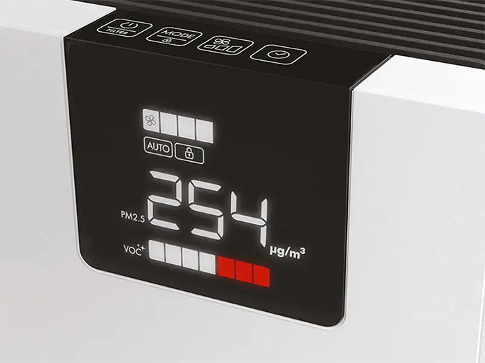 Máy lọc không khí còn được tích hợp cảm biến chất lượng không khí giúp xác định chất lượng không khí, khí độc trong phòng.